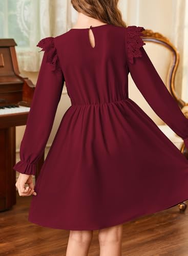 • FEATURES: This girls fancy dresses features a crew neck, puff long sleeve, lace embroidered top with button back. Its suitable for your kids to wear in daily or special occasiaons.
