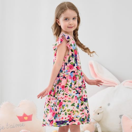 Girls Dress Flutter Ruffle Sleeve Boho Flower Floral Strawberry Sundress for Kids Casual Midi Dresses 3-10 Years 5