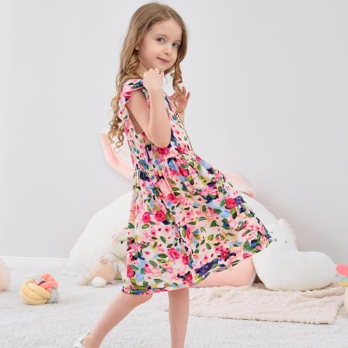 Girls Dress Flutter Ruffle Sleeve Boho Flower Floral Strawberry Sundress for Kids Casual Midi Dresses 3-10 Years 6