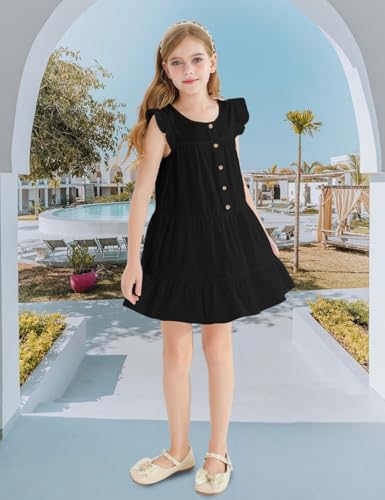 Girls Dresses Button Down Flutter Sleeve A-Line Sundress Casual Midi Dresses for 6-14 Years Kids 1