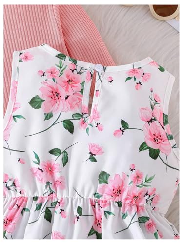 WDIRARA Toddler Girl's 2 Piece Set Frill Cardigan Floral Sleeveless A Line Dress Outfits 3