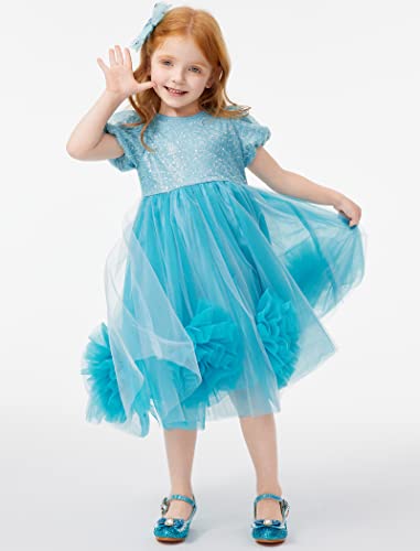 Girls Sequin Dress Puff Mesh Tulle Flower Party Gown Princess Dress Up Outfit 4