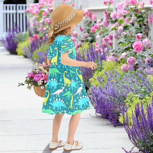 Cute Dinosaurs Girls Dress Short Sleeve Dress Girls' Summer Sundress 5-6T 7