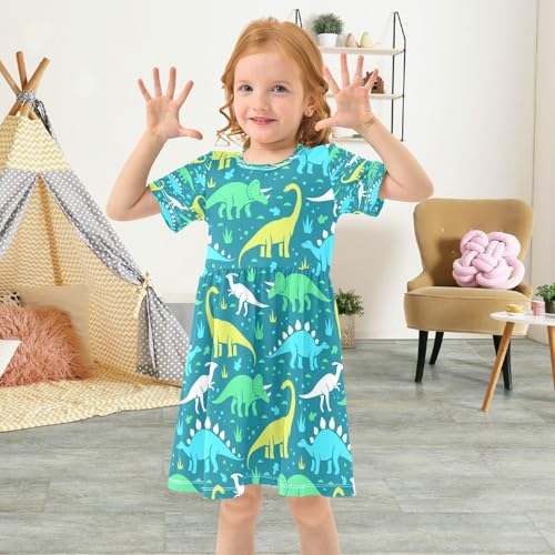 Cute Dinosaurs Girls Dress Short Sleeve Dress Girls' Summer Sundress 5-6T 5