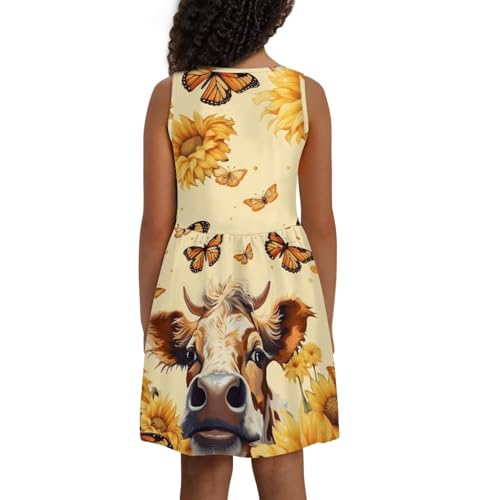 • 👗Features: The girls sleeveless dress features round neck,knee length,flowy,swing,flare casual dress.Various colors and pattern printing,like american flag,sunflower,leopard,butterfly,corgi,cow,cartoon animal,abstract hippie flower.