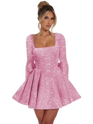 • Eye-catching designs: This sparkly sequin homecoming dress features a classic square neckline and long sleeves, creating a timeless, elegant look. The ball gown silhouette adds a fairytale touch, while the back bow detail provides a romantic finish—perfect for proms, weddings, and cocktail parties.