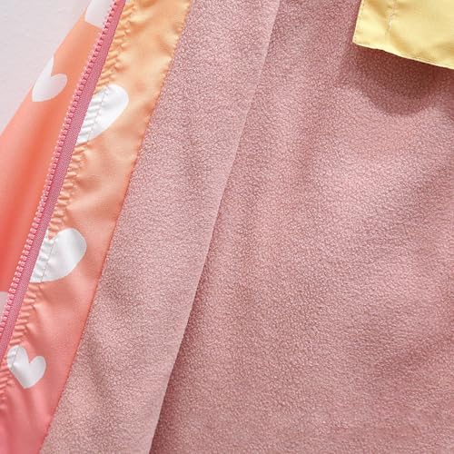 Beessbest Girls Rain Jackets Waterproof Hooded Fleece Lined Raincoats Cartoon Print Lightweight Windbreakers for Kids 5