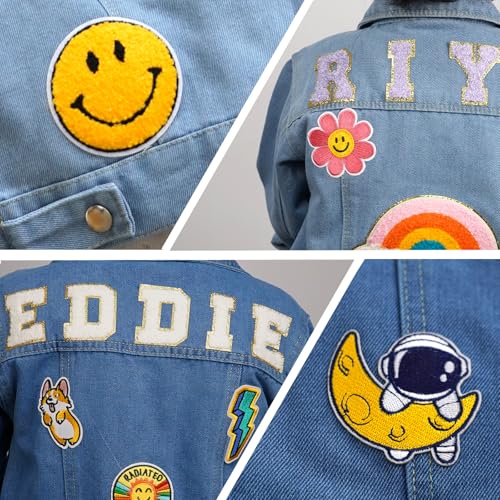 • 【70 Cute Patches】- Super many elements can be chosen, and your child will definitely fall in love with this baby jean jacket. Butterfly, flower, heart, rainbow, smiley face, puppy, astronaut, crown, flag, etc beautiful patterns. The patches will use adhesive backing and heat-pressed technology. The size of the large element is very large, so it is recommended to choose up to one. You can match them with small elements to make your denim jacket look better. Note: Up to 8 patches can be selected!!