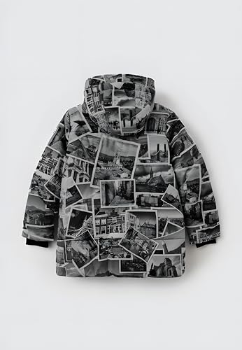 • Distinctive Aesthetic Appeal The jacket serves as a wearable canvas, featuring a striking monochrome collage of scenic photographs that creates a unique, artistic statement piece, setting it apart from conventional outerwear.