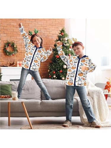 Blue Gnomes Orange Pumpkins Girls Fleece Jacket Girls Fall Jacket Boys Coats Zip Up Hoodie Children Outerwear 2-10T 6