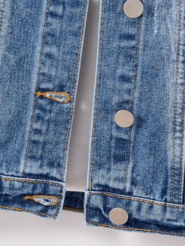 Ripped Jean Jacket for Girls Denim Jackets Classic Long Sleeve Button Down School Trendy Fall Outerwear with Pockets 5
