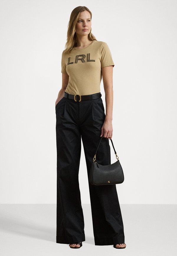 HOT ! Beaded Logo Cotton Jersey Tee - Print T-shirt - birch tan