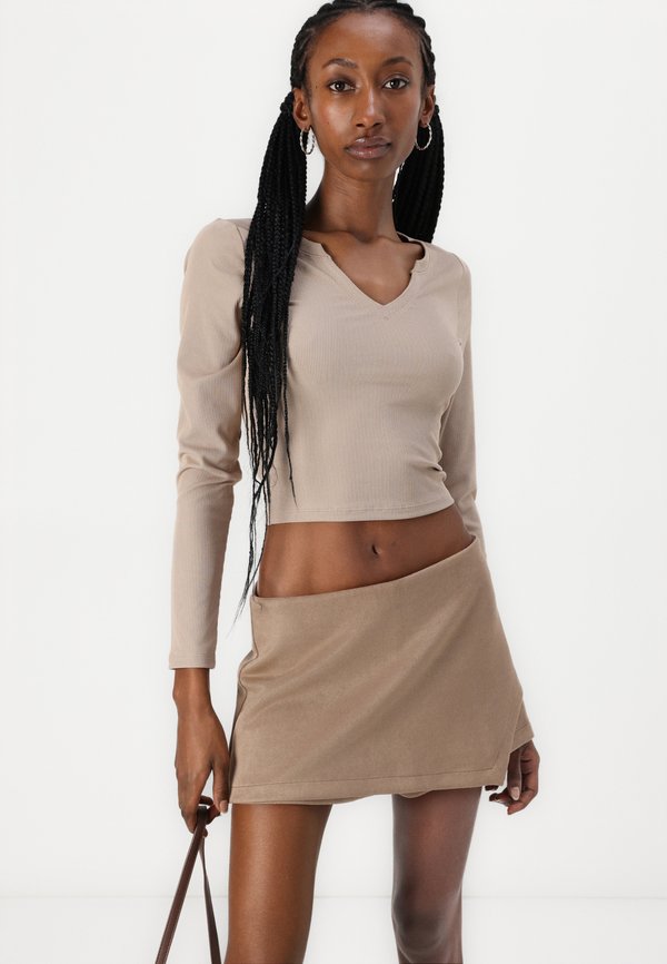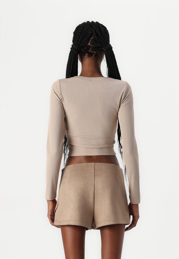 Ribbbed Seamless Fabric Notch-Neck Top - Long sleeved top - mocha meringue 1