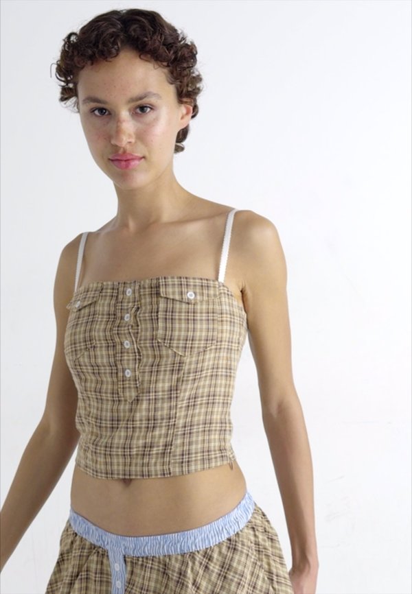 CHECKED CORSET - Top - beige 6