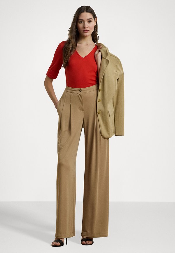 More information about Stretch Cotton Elbow Sleeve V Neck Tee - Basic T-shirt - bright vermilion