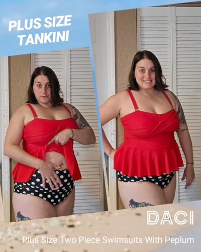 Daci Women Two Piece Plus Size Swimsuit with Bottom Peplum Tankini High Waisted Tummy Control Bathing Suit 1
