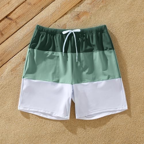 • Stylish Design: Featuring a vibrant color block design in shades of green and white, these couples matching swimsuits are designed to make your family stand out. The set features smocked bikini sets for women and girls, while men and boys get swim trunks with drawstrings and pockets. The trendy look combines fashion with functionality, perfect for any water activity.