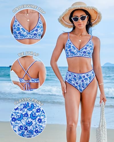 DaiLiWei High Waisted Bikini Sets Womens Bathing Suits Tummy Control 2 Piece Swimsuit Full Coverage Floral Swim Suits 7