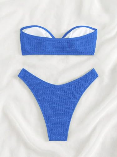HOT ! Limeeke Women's Strapless Bandeau Bikini Sets Ring Linked Two Piece Swimsuit Removable Strap Textured Bathing Suit