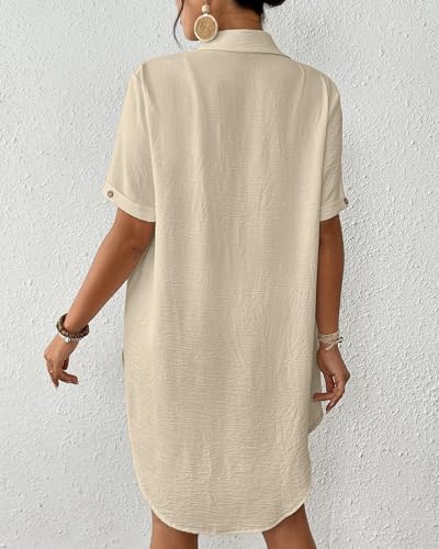 • Stylish shirt cover up with classic shirt collar, short sleeve, button down closure and two functional front pockets for a polished look, a bit sheer style add touch of fashion to your summer outfits for effortless beach-to-street style