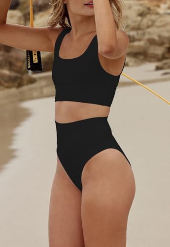 Women's High Waisted Bikini Sets Sporty 2 Piece Swimsuits Middle Cut Bathing Suits 2