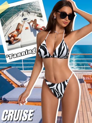 HOT ! Patterned Bikinis,Scrunch Butt High Cut Thong Bikini Sets,Cute Two Piece Swimsuits for Women Beach Vacation
