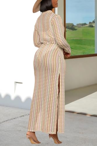 • Feature:Long sleeve maxi long dress,striped see through cover up dress,contrast color dress,collared neck,v neck crochet,side slit, sexy hollow out beach sundress dress.