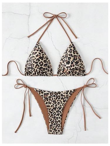 SOLY HUX Women's Leopard Print Bikini Sets Halter Triangle Tie Side Two Piece Swimsuit Bathing Suits 1