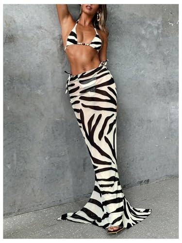 • Features: Beach skirt for women, bathing suit cover up for women, zebra print, animal print, skinny, slim fit, maxi, sheer mesh,