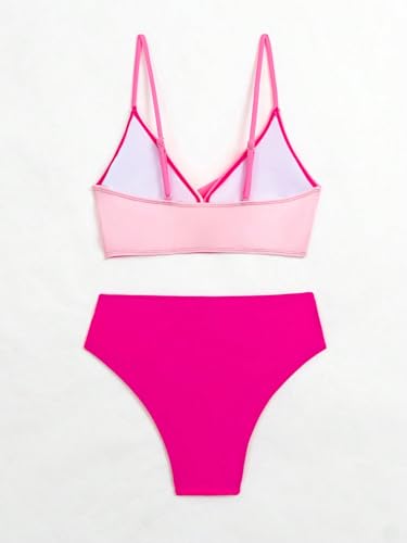 YELAIVP High Waisted Bikini Sets for Women V Neck Bathing Suit for Women Tummy Control Two Piece Swimsuits Swimwear 2