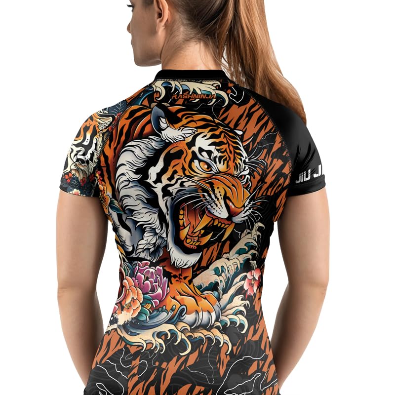 HOT ! Wildlife Women's Performance Rash Guard – Short Sleeve Compression Shirt for BJJ Jiu Jitsu and MMA Training