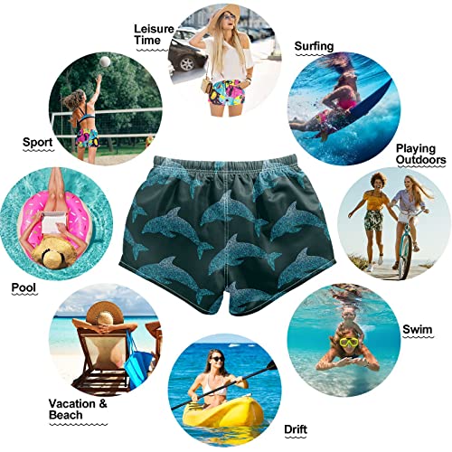 • ☀🌈🌴 HIGH QUALITY MATERIAL:Women swim shorts made of 100% Polyester fabric, no pilling, pre-shrunk, sun protection, breathable and lightweight, fine tailoring. With the breathable fabric made of premium polyester and exquisite workmanship, the boardshorts will give you a comfortable wearing experience, which can protect your skin well and make you more pleasant when you are swimming or playing sports.🌸️