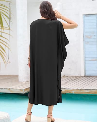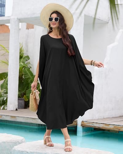 Bsubseach Kaftan Dresses for Women Batwing Sleeve Beach Cover Up Solid Color Plus Size Caftan Long Loungewear Dress 3