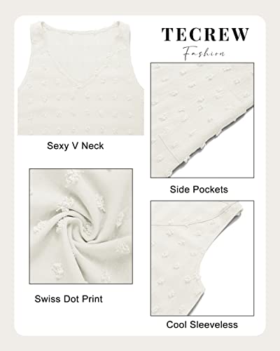 HOT ! TECREW Women's Summer Sleeveless V Neck Tank Dress Swiss Dot Beach Cover Up Mini Dress with Pockets