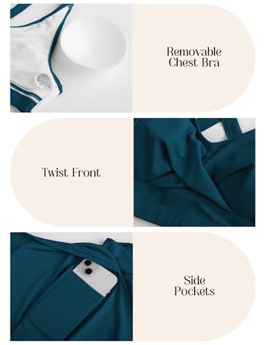 Kate Kasin Women's High Waisted Bikini Sets Sporty Twist Front Swimsuit Skirted Tummy Control Bathing Suit with Pockets 4