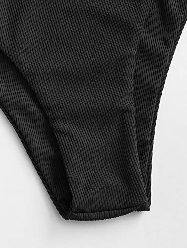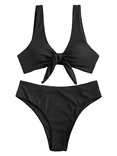 HOT ! ZAFUL Women's Ribbed Tie Front Knot Bralette High Waisted Hipster Bikini Ditsy Floral High Cut Swimsuit
