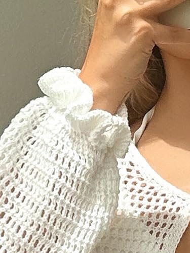 • Feature: 3D Flower Decor, Hollow Out, Crew Neck, Tie Front, Long Sleeve, Ruffle Hem, Mini Short Length, Swimwear Cover Ups for Women