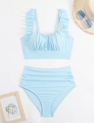 Tainehs Women Two Piece Bikini Set Ruffle High Waisted Swimsuit Ruched Tummy Control Bathing Suit 6