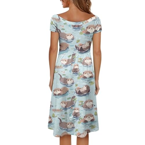 • ☆Features: The unique design of the shoulder, revealing a beautiful collarbone, showing elegant temperament; The loose version allows you to wear comfortably in your daily life; Short sleeves are suitable for summer and spring; Flare midi dress
