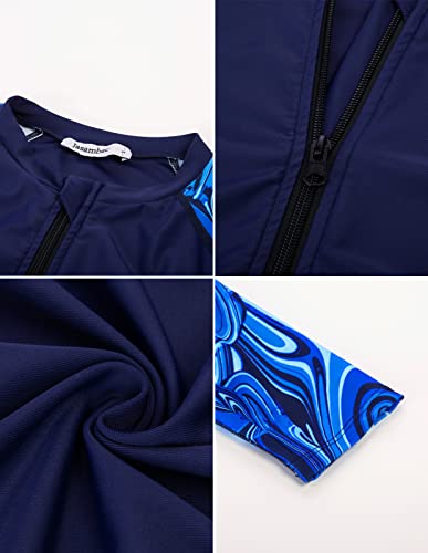 JASAMBAC Women 3 Piece Rash Guard Long Sleeve Zip Up Swimsuits with Boyshort UV UPF 50+ Swim Shirt Built in Bra 6