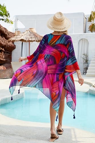 Women's Floral Blouse Loose Batwing Sleeve Beach Cover ups 5
