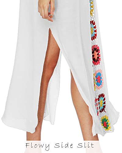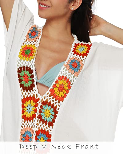 • Fashion & Sexy: The loose fit bikini cover up features solid color, plunge v neck, short sleeve and embroidered flower crochet front. Perfect boho cover up, African dresses, kaftan for women