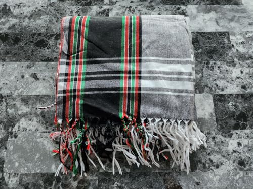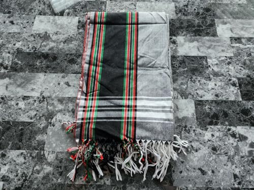 HOT ! Unisex African Kikoy Scarf, Sarong, Wrap, Throw - 100% Cotton, Handmade Tassels, Multi-Use Beach Cover-Up, Picnic Blanket, & More – Grey with Black border.