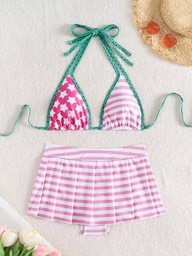 Women's Striped Printed Bathing Suit Star Halter Swimsuit Bikini Set Skirt 3