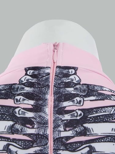 haikyuu Women Pink Skeleton One Piece Swimsuit Long Sleeve Skull Bodysuit Swimwear Goth Gothic Bathing Suit 6