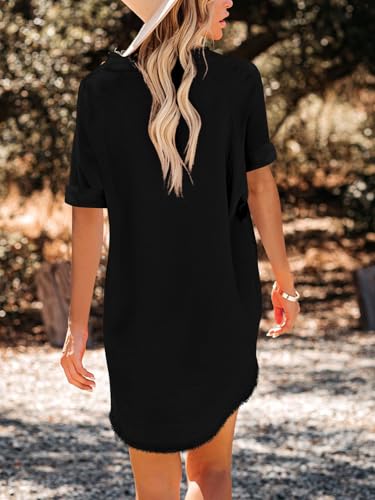 • 【FEATURES】:The short sleeve beach dresses for women, Loose shoulder sleeves.V-neck button design,collar and hem edging,loose and curved hem.It is suitable for spring and summer holiday clothes,Cover-ups Oversized Blouse.