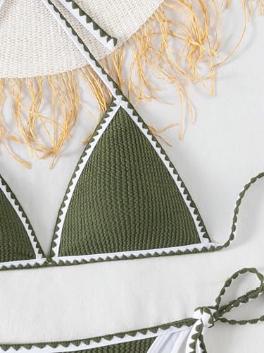 More information about Fanuerg Women's Ribbed Triangle Bikini Sets Whip Stitch Halter 2 Piece Swimsuits Color Block Side Tie Bathing Suit
