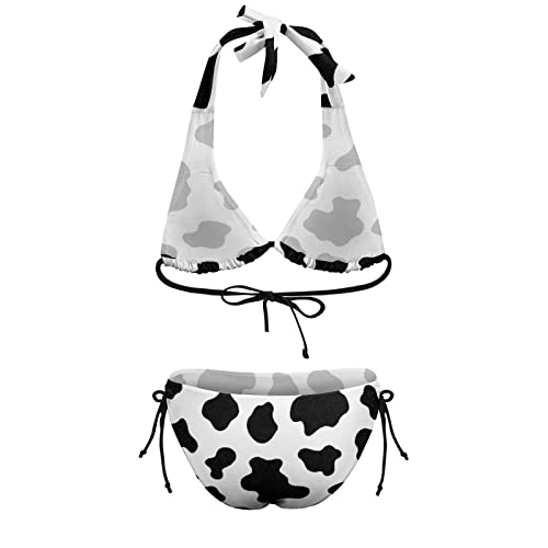 Cow Print Bikini Sets String Halter Triangle Bathing Suits Swimsuit for Women 1
