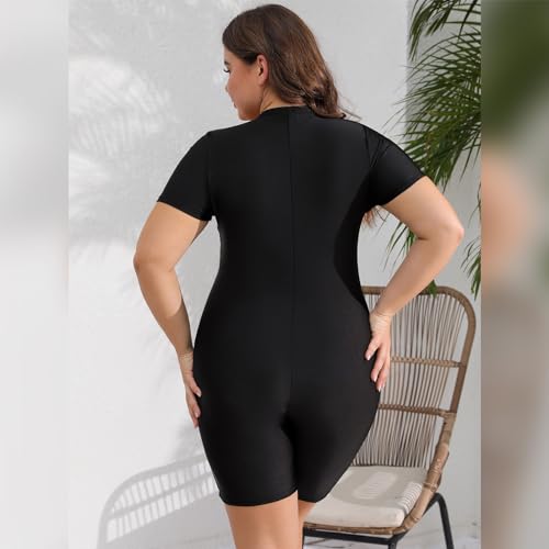 • Plus Size Bathing Suit For Women: Women one piece rash guard swimwear bathing suit long short sleeve rashgaurds for the sun protection, UPF 50 and fabric protect you from the sun. UV blocking thin swim shirt tops with built in bra soft chest pad to provide extra support. Short sleeve boyleg swim shirts for women, rashguard swim shirts with boy shorts, full coverage long sleeves monokini bathing suits for casual summer vocation and surfing, modest muslim swimsuits for women athletic swimsuit;