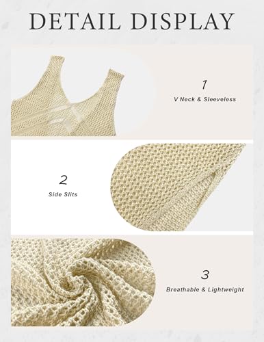 More information about Womens Crochet Sexy Beach Swimsuit Cover Up Fall Casual Boho Sheer V Neck Sleeveless Slit Summer Midi Dress 2024